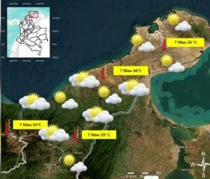 Valledupar, 8 de enerode 2026.- El Sistema de Alertas Tempranas de Corpoguajira informó que el departamento experimentará durante la jornada